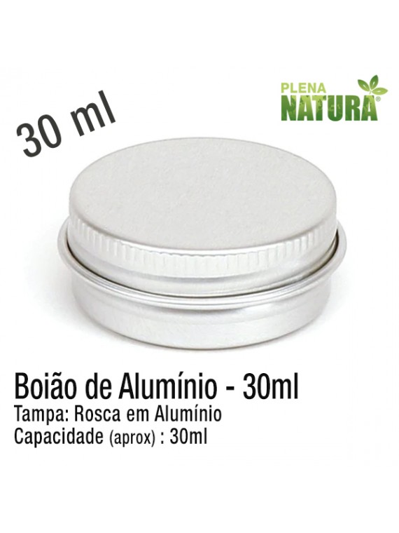 Boião de alumínio – 30 ml, com tampa de rosca, ideal para cremes, bálsamos e outros.