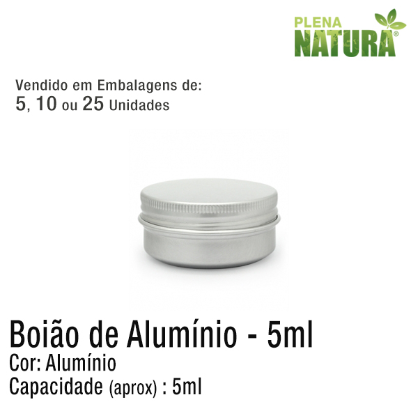 Boião em alumínio, com capacidade de 5ml (aprox).Disponível em embalagens de 5, 10 ou 25 Unidades.
