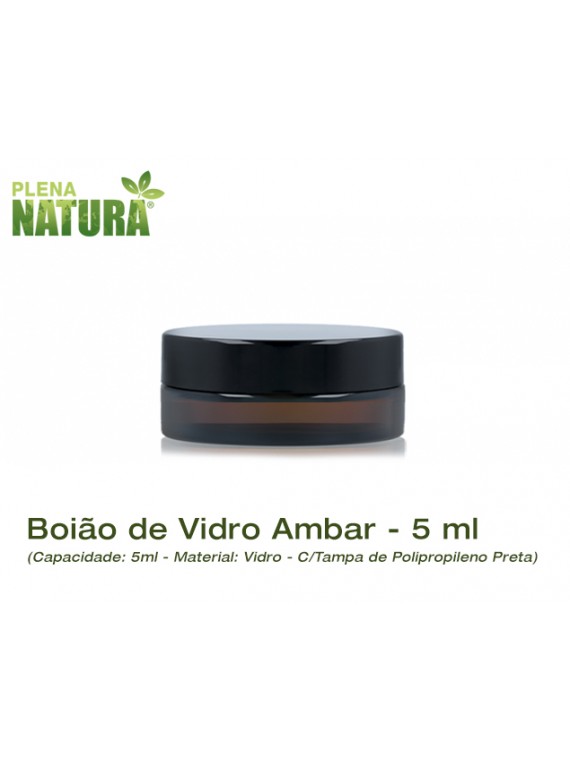 Boião em Vidro Âmbar, com tampa de rosca preta, em Polipropileno, ideal para cremes, bálsamos e outros.