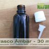 Frasco de Vidro Ambar, c/Tampa Conta-gotas em Aluminio Dourado – 30ml