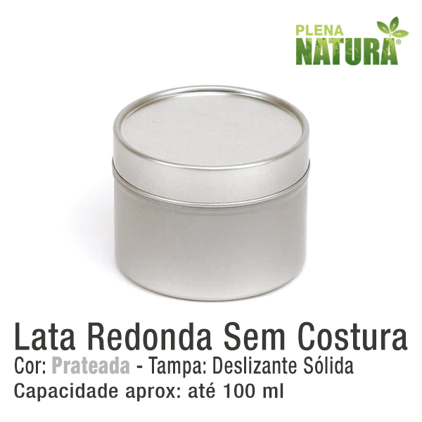 Lata Redonda, sem CosturaCor: PrataMaterial: Folha de flandresTipo de Fecho: Tampa deslizante maciçaAdequado para: Velas, alimentos, óleos de massagem, cosméticos**Dimensões (externas): (d) 64 mm x (a) 45 mm Capacidade aproximada: 100mlDescrição: Recipiente redondo em folha de flandres, sem costura. É ideal para fazer velas.As latas são revestidas com produto seguro para alimentos. O revestimento é durável pelo que podem ser reutilizadas várias vezes.