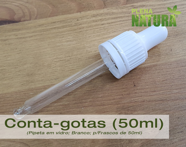 Pipeta conta-gotas em vidro, com tampa de cor branca, indicada para Frascos de 50ml – boca DIN18(Foto apenas para fins ilustrativos. A aparência do produto pode variar.)